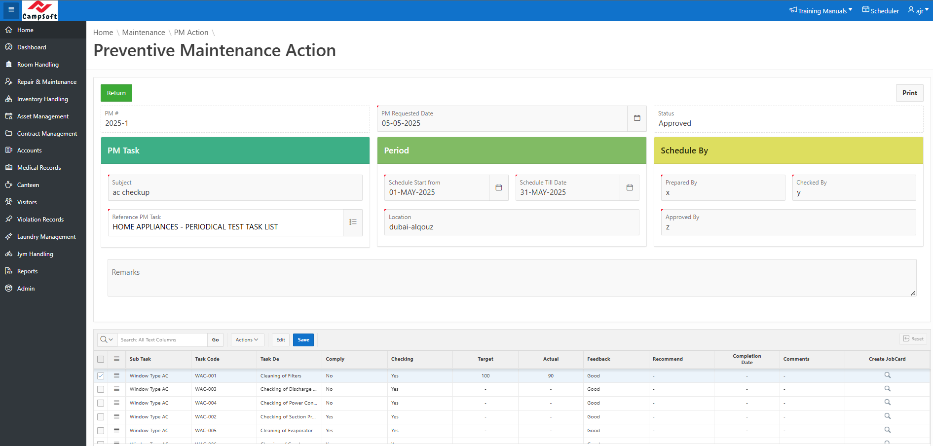 Handling Periodical Maintanance and it allow to generate the jobcard here to complete the task.