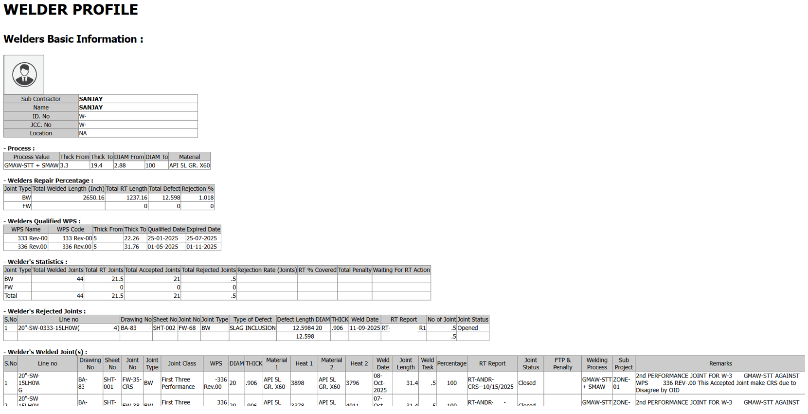 Weld-Fit is a comprehensive end-to-end software application for managing welding operations and generating Saudi Aramco requested daily, weekly, and periodical reports.